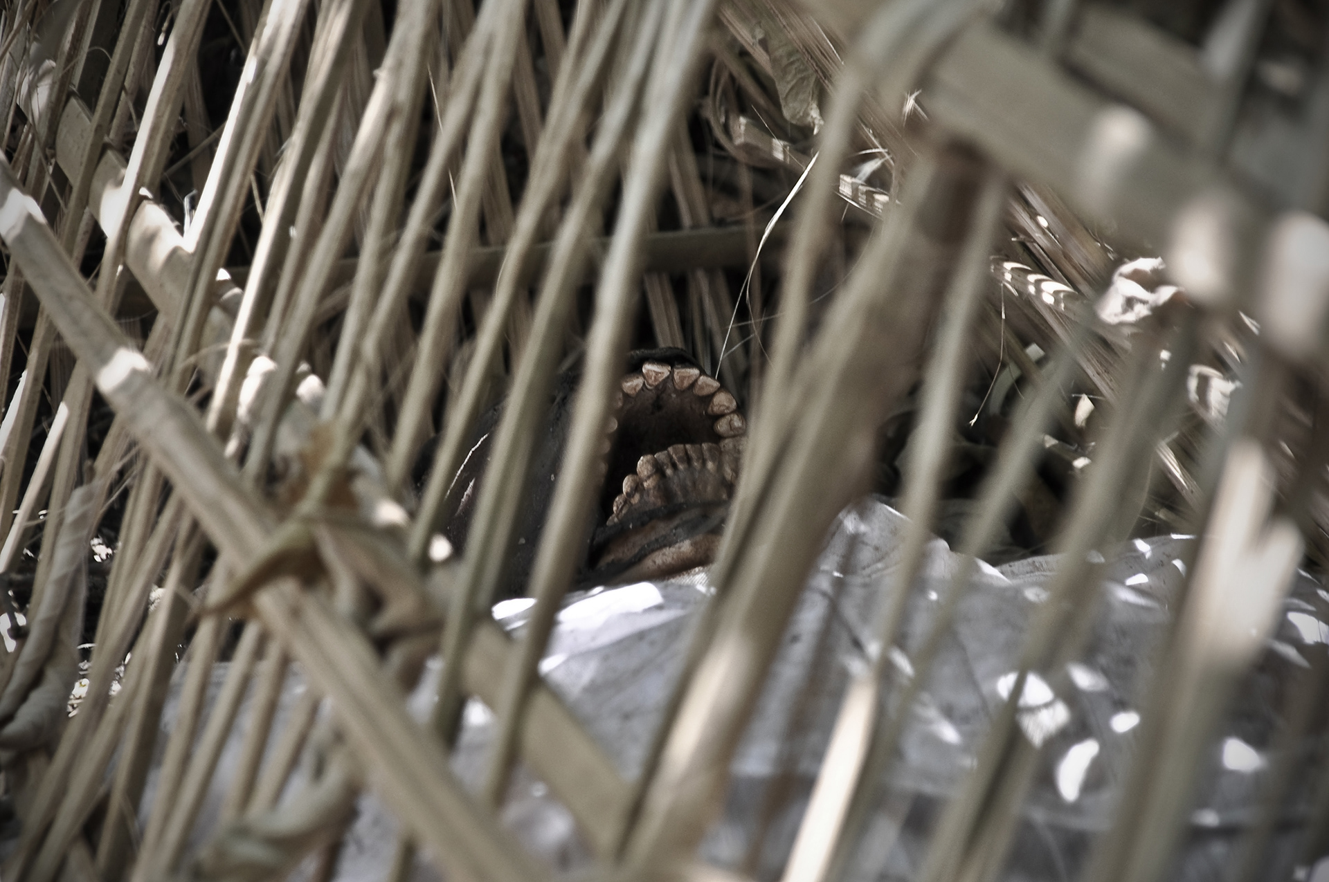 Unlike the Balinese people, the people of Trunyan do not cremate or bury their dead, but just lay them out in bamboo cages to decompose. A macabre collection of skulls and bones lies on the stone platform and the surrounding areas.